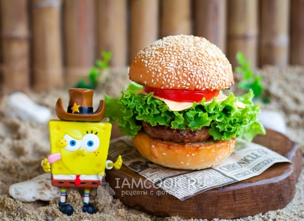 Гамбургер является разновидностью сэндвича, состоящей из жареной рубленой котлеты, что подается внутри разрезанной круглой булки. Он обычно дополняется разнообразными приправами, к примеру, листьями салата, кетчупом и майонезом, дольками маринованного огурца, помидора или кабачка, сырым или поджаренным луком.